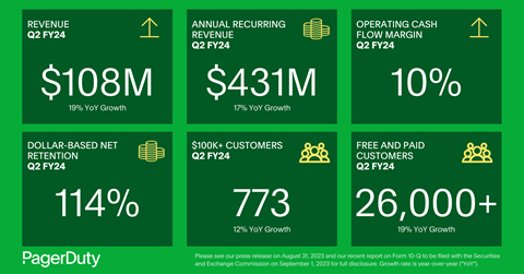 PagerDuty, Inc. (NYSE:PD), a leader in digital operations management, today announced financial results for the second quarter of fiscal 2024, ended July 31, 2023.